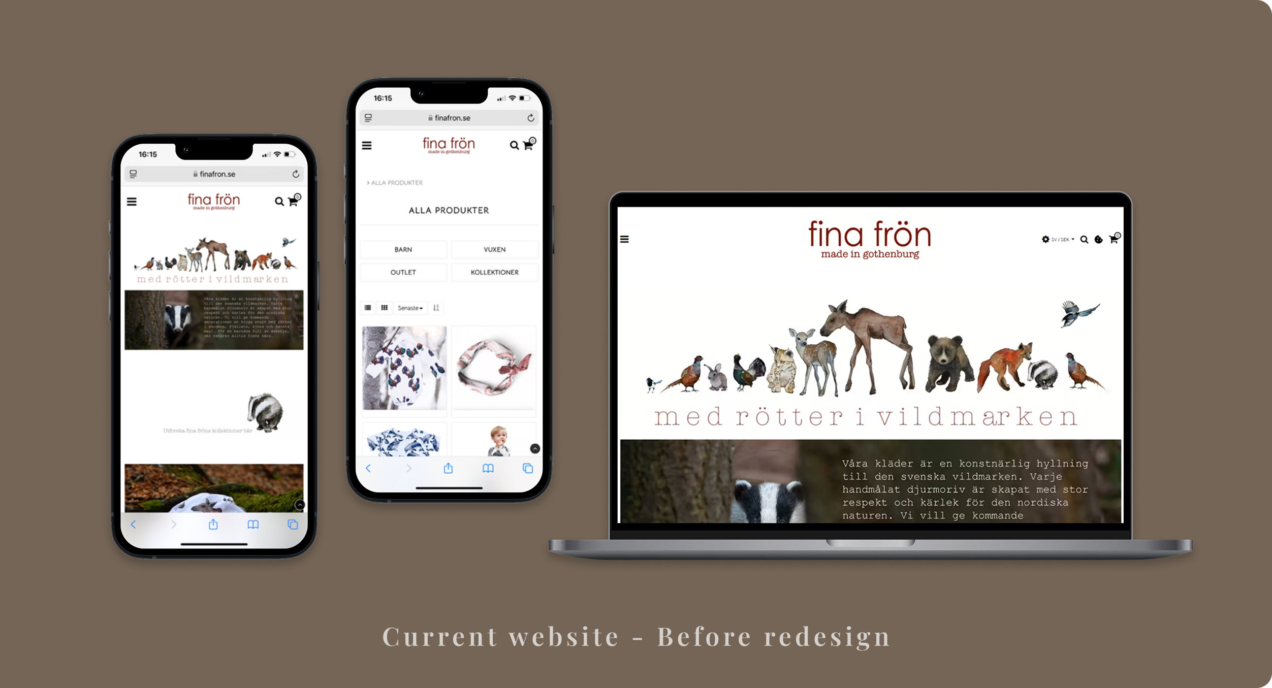 Concept redesign of Fina Frön’s e-commerce website, improving navigation, highlighting the brand’s nature-inspired identity, and creating a smoother path from browsing to checkout. (Freelance)