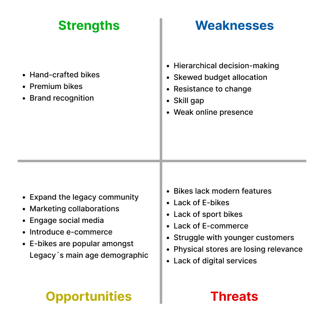 The analysis made one thing clear: Legacy Bikes is held back, not by its products, but by its organizational structure, digital immaturity, and resistance to change and innovation.