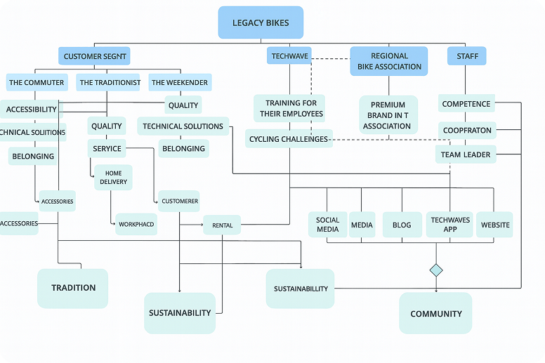 This project was part of a university course in Service Design, where my team and I were challenged to rethink the future of Legacy Bikes, a traditional bicycle manufacturer in Oregon known for craftsmanship and heritage (Fictional company) . Unlike previous projects that focused mostly on UX and interfaces, this assignment required us to work from aholistic service perspective, balancing user needs with organizational constraints, business strategy, and service delivery across multiple touchpoints.